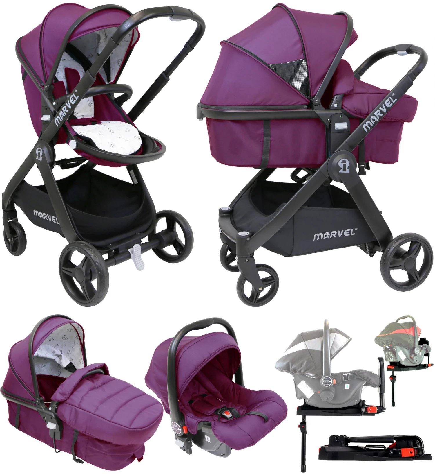Carefully Designed To Look Amazing With Its Sleek Aluminium Chassis, Cleaver Seat & Carrycot 2 in 1 Design Make The Marvel One Of The Most Desirable And Iconic Pram System In The Nursery Equipment And Baby Fashion Industry.