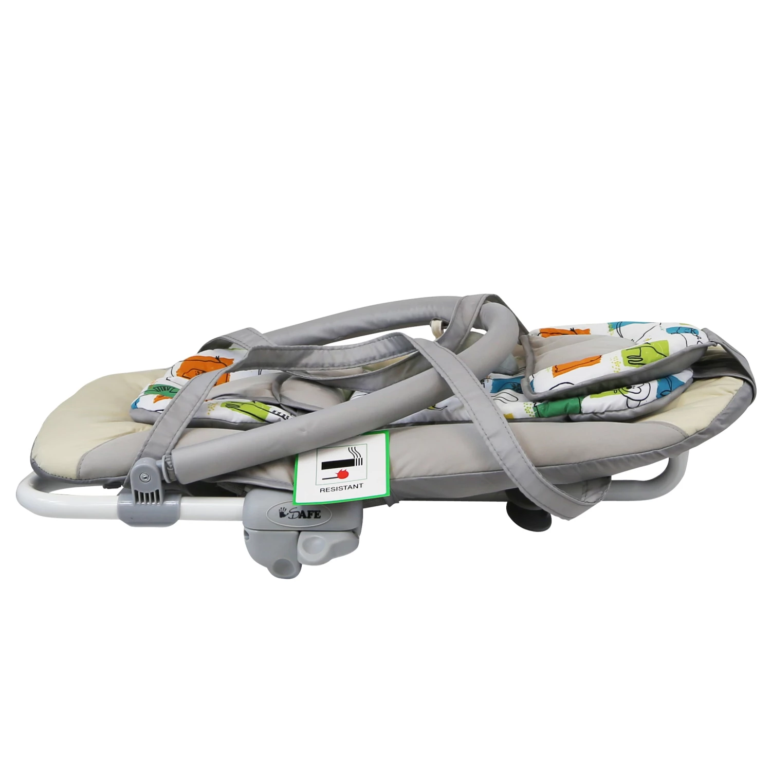 The Isafe Baby Bouncer Rocker Includes a Soft Padded Cushion, Height Adjustable / Removable Head Rest Cushion, Adjustable Back Rest With 3 Positions, Adjustable Calf Support With 2 Positions, Adjustable Removable Toy-bar, Carry Handles, Rock & stop Function.