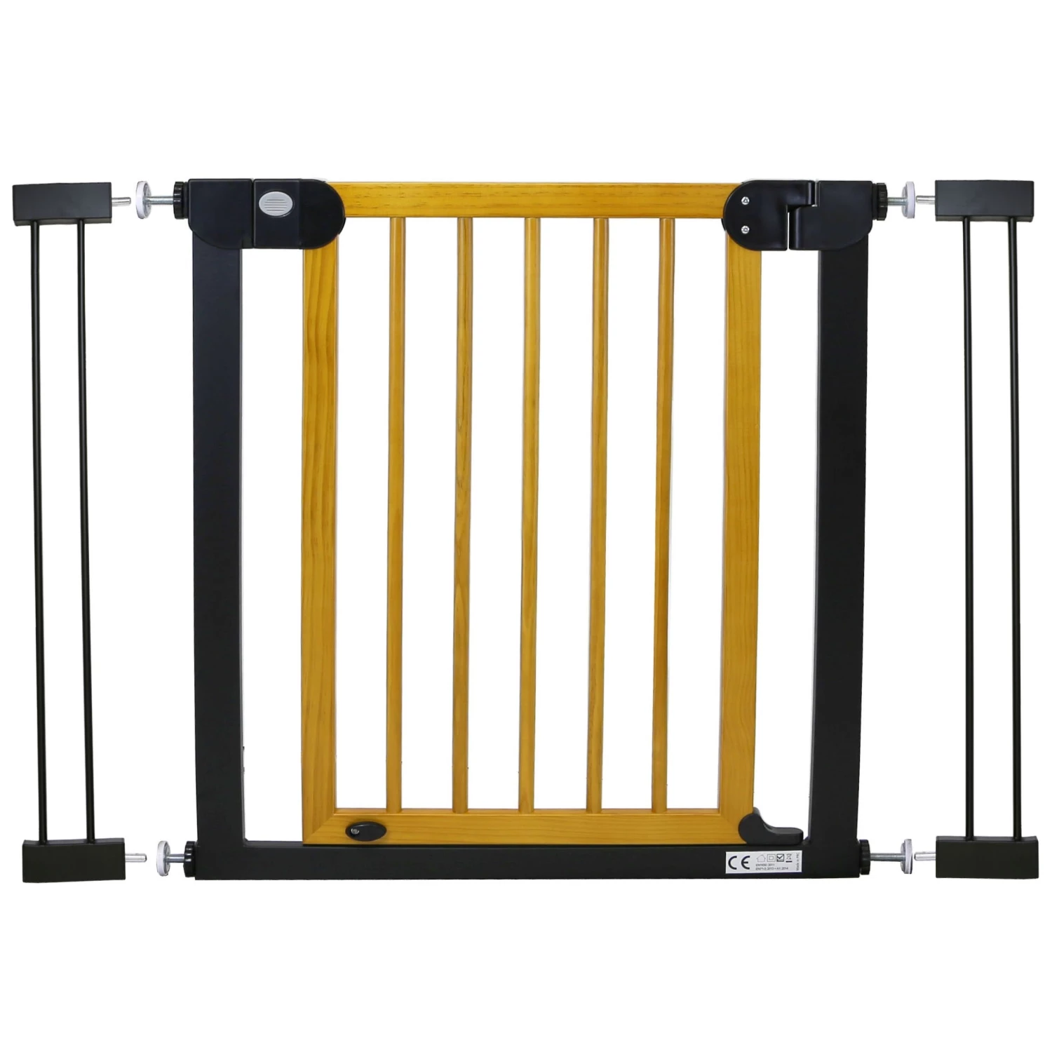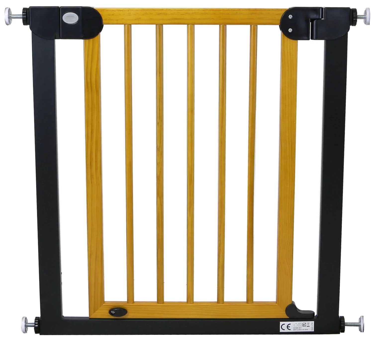 The iSafe Wooden Stair Gate 90°Auto Close, now features a 90° STOP OPEN Auto-close features, wider walk through and a new slim line easy to hold handle which continues to be one of the most superior and recognisable on the UK market.The strong 4 point pressure fit power frame provides ultimate strength, whilst the double locking option provides maximum safety. The iSafe 90°Auto Close stair gate safety gate has a one or two way opening making is suitable for use on the stairs. Made from strong steel construction the Easy Fit Plus Deluxe stair gate is assembled and ready for use, adjusting to fit openings from 76 cm to 83 cm.