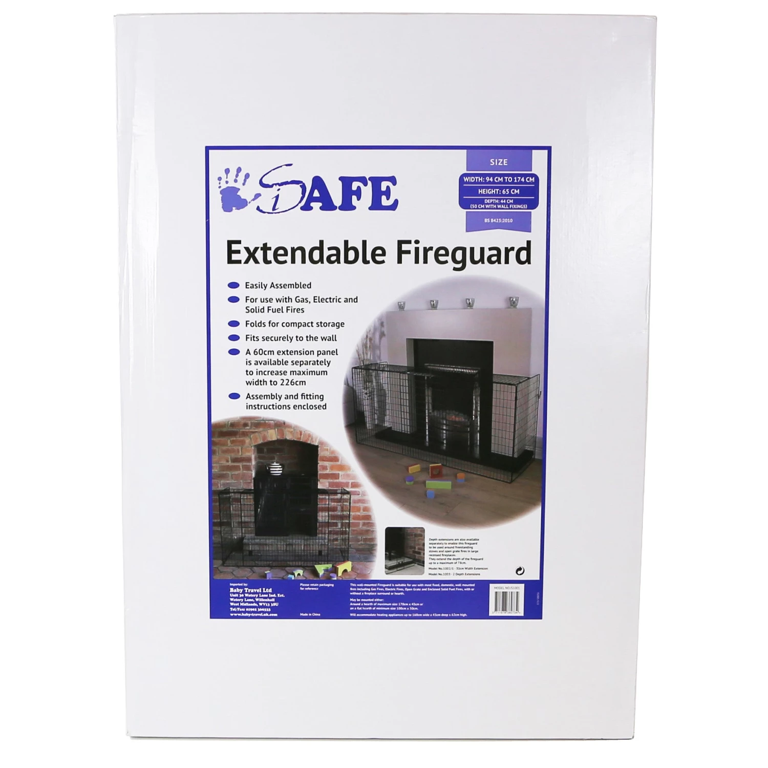 - Extendable Fire Guard Extends From 94-174 Cm, Making It Suitable For Most Fireplaces. Made From Durable Steel, The Guard Has A Matt Black Finish That Looks Great In Any Home. The Design Of Our Extendable Fireguard Ensures That Your Little One Stays Out Of Harm’s Way, But Makes It Easy For An Adult To Have Access To The Fireplace. When Not In Use, The Isafe Extendable Fireguard Folds Flat For Easy Storage.