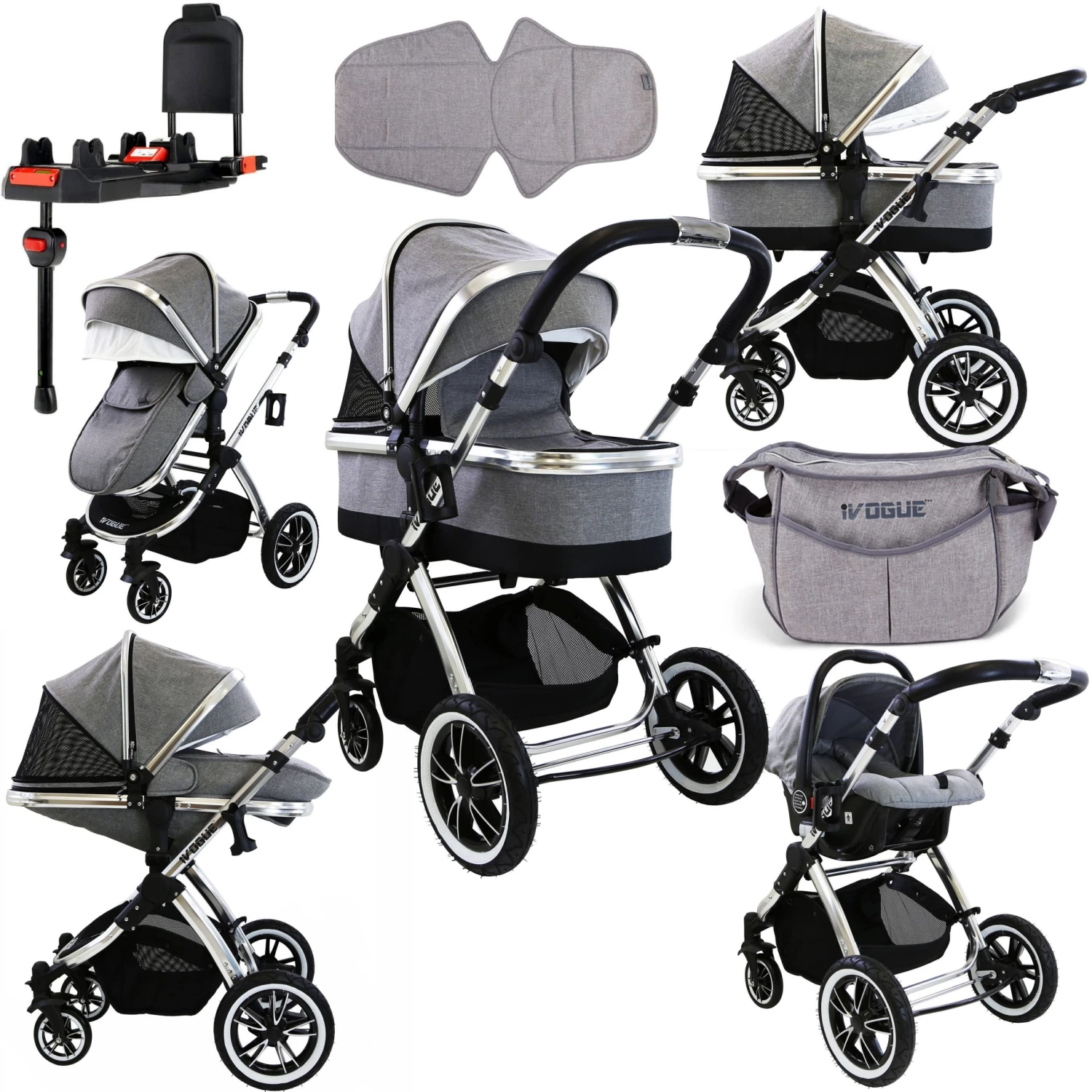 Carefully Designed To Look Amazing With Its Sleek Aluminium Chassis, Cleaver Seat & Carrycot Design Make The Ivogue One Of The Most Desirable And Iconic 2in1 ~ 3in1 Prams In The Nursery Equipment And Baby Fashion Industry.